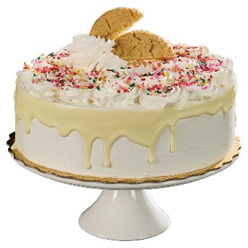 <p>Classic white cake made from scratch with confetti sprinkles baked inside the batter. Fluffy real whipped cream filling and a rich buttercream on the outside. Decorated with sprinkle-topped whipped cream swirls and a sugar cookie.</p>